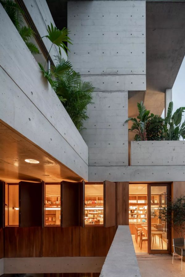 母亲的房子的图书馆坐落在福建泉州东石镇区,高四层半,融合了《皮囊》小说下的闽南风情,挑战传统与当下的碰撞,文化与生活的交错。自然设计的理念贯穿始终,房子是“素面混凝土”的风格,映射了自然淳朴的民风民情,底下两层是图书馆主体,环屋三面是半开放的公园,1.5米高的围墙内外通透层层见绿。