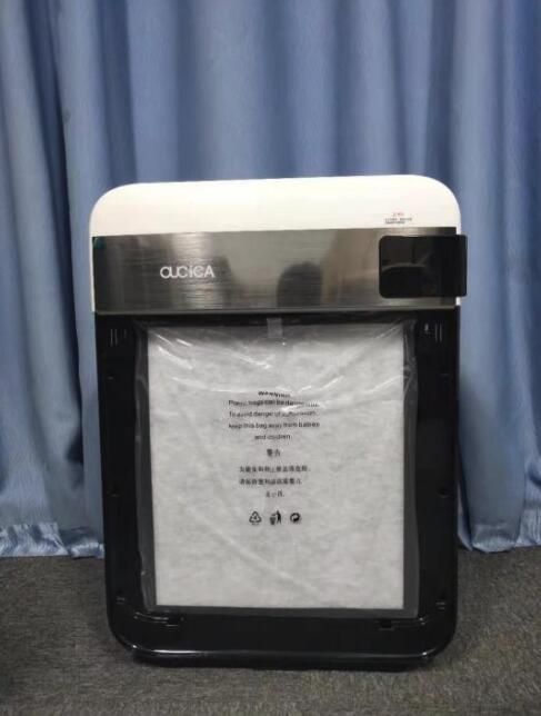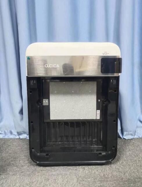下面就要进入开机操作啦,第一次开机前需要抬手、弓腰、开前盖,将全新滤网的袋子撕掉,再装回去,盖好前盖就可以使用了。