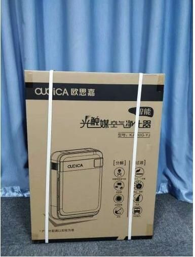 包装采用了双层纸箱,坚固结实,两层包装都印有分解、过滤不同有害物质的字样,其中,分解主要是针对甲醛等有害气体、病菌、流感病毒和异味;而过滤主要是针对二手烟、粉尘、花粉、汽车尾气、宠物毛发等粗颗粒污染物。