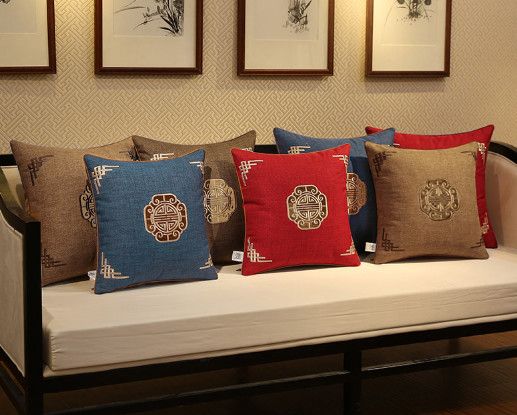 抱枕可作为沙发配色的点缀,过年要让沙发更有节日气息,就可以考虑这种新中式风格的抱枕,中国传统配色加上金色中式图腾绣花点缀,更添一份仿古中式情怀,年也过得更有中式韵味。