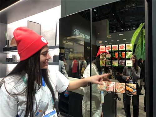 CES现场,参观者体验海尔智能冰箱