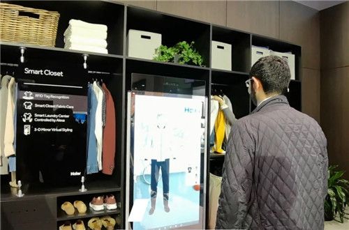 在智慧衣帽间,海尔洗衣机能够智能地识别衣物和水质状况自动匹配洗涤程序,自动添加洗涤液用量,并且在洗涤液不足时可自动提醒;3D试衣镜可为体验者提供穿搭推荐,用户可进行虚拟试衣。智能洗衣机、衣物护理柜、3D试衣镜等产品,可以满足用户洗、护、穿、搭、购全流程的智慧体验。