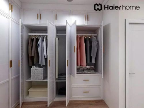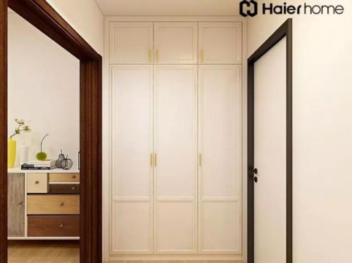 ▲卧室衣帽间:严格按照业主的身高和习惯来设置收纳区,分区明晰,设置灵活,实用性强。值得一提的是,为海尔全屋家居提供柜体、门板、五金、电器的供应商中,96%以上都是国际知名公司,再加上欧洲高标准的生产及制造工艺,比如德国豪迈生产线、意大利涂装工艺、德国激光封边技术等。所以,定制家具呈现出较高的质感和较长的耐用性,也不足为奇。