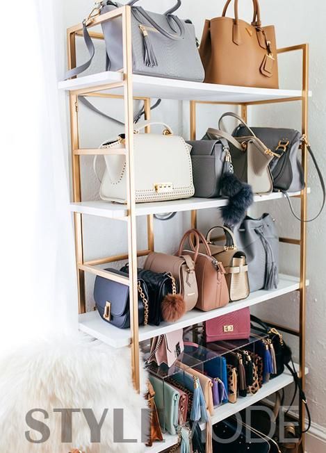 我不是大明星,也没有豪华的大衣柜!还是把省掉以陈列的方法摆放包包的想法吧。你可以选择小型的包包放入较大的包包内做收纳,不但能够节省空间,还能保证你的大包不会因为挤压而变形。当然,做这种收纳时要记住到底收了什么东西进去,以免需要的时候找不到。