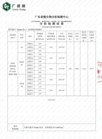 近期,记者获悉,受上海市教育局装备部及各大医院的委托,久保清新材料科技(上海)有限公司对其研发的新型光催化涂层产品的除菌和抗病毒性能委托国内权威的第三方检测机构【广东省微生物分析检测中心】进行了分析检测。从报告的结果来看该产品对于H3N2流感病毒的杀灭率达到了惊人的99.85%!并且对各种细菌和病毒有广谱杀灭功能。