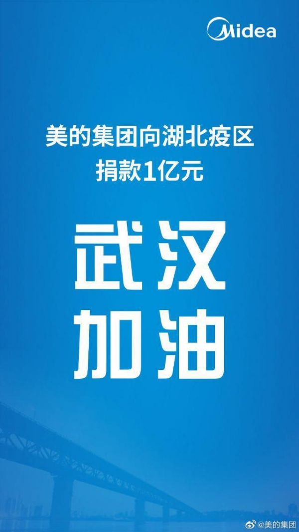 1月26日,美的集团决定通过湖北省红十字会,向湖北疫区捐赠1亿元人民币,指定用于采购紧急医疗物资;同时,美的启动全球采购平台,发挥海外渠道优势,24小时协助采购紧急医疗物资空运国内——全力支持抗击新型冠状病毒肺炎疫情。