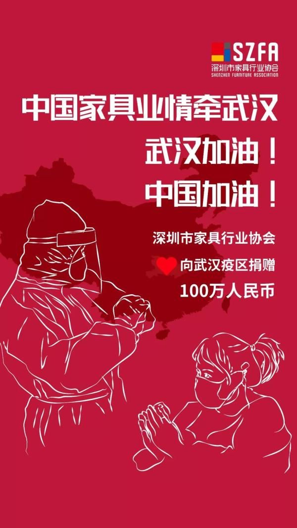 1月27日,深圳市家具行业协会已向武汉疫区捐款100万人民币!