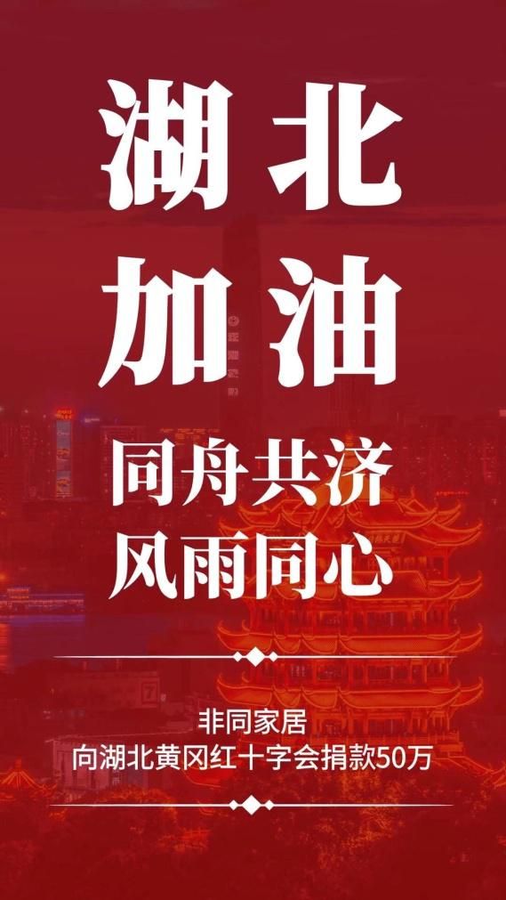 众志成城 共战疫情 | 非同家居向湖北黄冈捐款50万元人民币