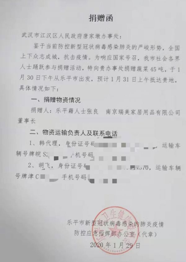南京瑞美家居张良先生向武汉无偿捐赠蔬菜40余吨