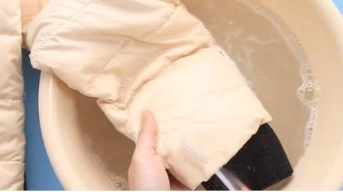 首先我们将白醋和洗衣液按照 1:1 的比例混合,加入清水之中,再将羽绒服放到水中浸泡20分钟。用软毛刷清洗羽绒服表面,最好顺着一个方向刷洗,减少对布料的伤害。注意要用挤压的方式挤出水分,切忌拧干。如果羽绒服依然有很多水分,可以平铺在大浴巾上面,然后通过卷缩的方式,吸收剩余的水分。