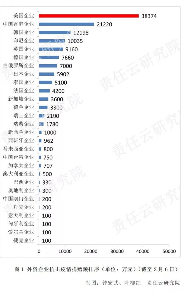 截至2020年2月6日,254家外资企业累计捐赠13.78亿元现金及物资。美国、中国香港、韩国企业捐赠额居前三。其中,74家美国企业累计捐赠3.84亿元,占比27.9%。