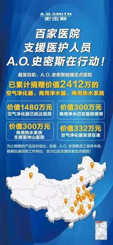 A.O.史密斯:驰援定点医院 捐赠价值2412万空气净化器、商用热水系统、商用净水