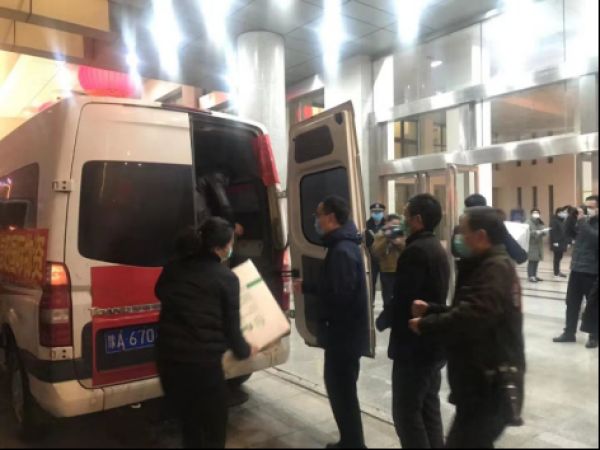 2月6日20时45分这批物资顺利到达信阳,美巢装饰总经理花永红代表美巢将首批物资2000个N95口罩、4000套防护服正式转交给信阳市政府。