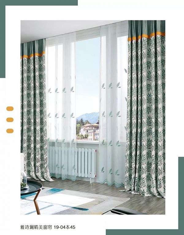 YASLAN“自然风”窗帘采用象征大自然元素之绿色为主色调,采用植物形状将其有规律的分布于窗帘之上,随风而动带来扑面的自然气息。