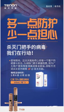 *由于消毒液的数量有限,本次活动仅针对亚太天能指纹锁的用户开放,敬请谅解*