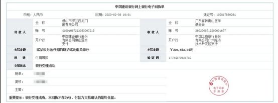 2月7日,罗兰西尼门窗向广东省钟南山医学基金会捐出所筹集的293842.54元善款,用于抗击新冠肺炎疫情一线医护人员的救助和医疗防护物资采购。