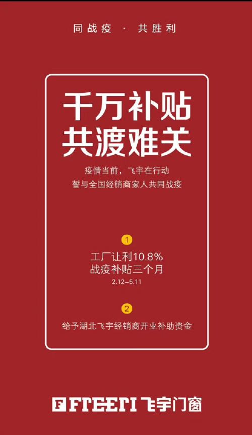 快讯丨飞宇门窗让利10.8% 与经销商共克时艰