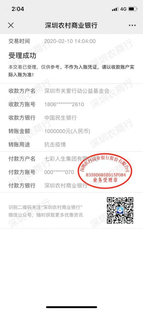 据了解,这并不是七彩人生集团在此次防控新冠肺炎阻击战的第一次捐款。早在 1 月 29 日,七彩人生集团便向武汉市红十字会捐款 10 万元,用于支持疫情地区应急物资的采购。