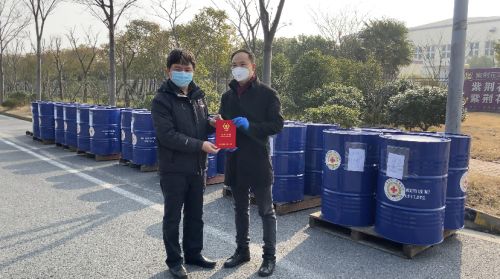 (上海讯)2月9日,紫荆花涂料(上海)有限公司向上海市金山区红十字会捐赠5吨75%酒精,支援当地疫情防控工作。