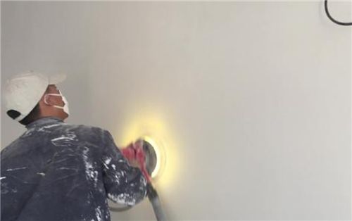 3、腻子刮好以后,将墙面再进行打磨,这样做是为了让墙面变得加倍细腻均匀,但打磨腻子最好选择晚上进行,因为在灯光的照射下能够看清楚墙面腻子的平整度。