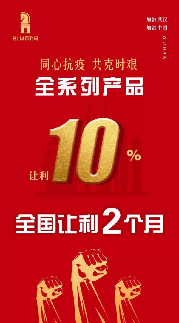 2020年,新型冠状病毒感染的肺炎疫情席卷而来,全国各地疫情防控形势严峻复杂,百利玛总部高度重视,全面动员部署疫情防控工作,公司为了帮扶终端各店面复工与运营,特启动全国经销商关爱政策: