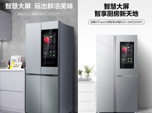 国美21Face智慧大屏冰箱集食材健康管理、娱乐休闲、饮食料理、百科问答于一身,并以大容量著称。该冰箱目前上市了两款不同型号,分别是国美“BCD-GM412WPi十字门智能冰箱”和“国美BCD-GM532WPi对开门智能冰箱”,容量分别为412L和532L,其多个精巧空间分类存储(冷藏室、变温室、冷冻室),轻松满足全家人好几天的饮食需求,特别是疫情期间,多囤些全家人爱吃的鱼禽蛋奶、瓜果蔬菜,总能让人更安心一些,也可以好好犒劳辛苦工作的自己。