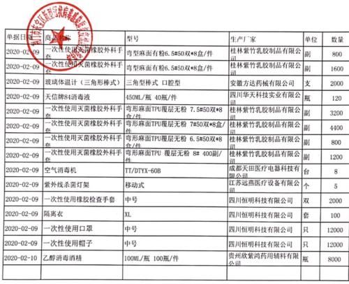 在筹款结束之后,成都市智能全屋定制商会通过多方筹谋,第一时间将此次募集到的所有善款,采购了包括医用口罩、医用手套、医用帽子、隔离衣、体温计、消毒液、消毒酒精、空气消毒机、紫外线消毒灯等一批价值近25万元医疗防护物资。并于2月11日,将物资全部送抵湖北荆门市东宝区新型冠状病毒感染肺炎疫情防控指挥部。
