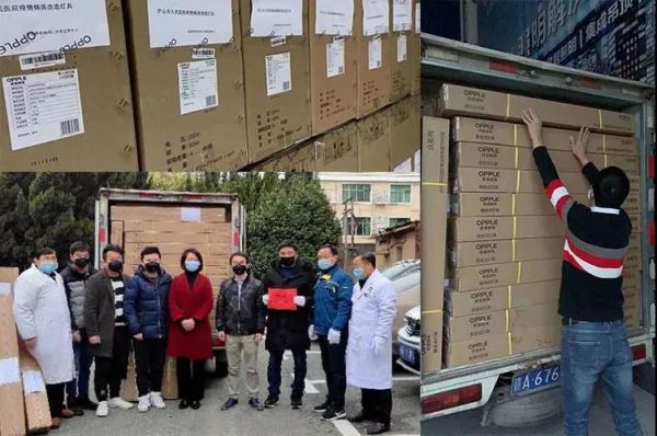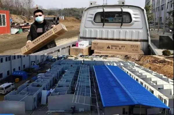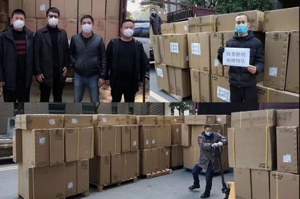 2月7日,欧普照明捐赠的近千件照明产品送达现场,助力隔离病区的快速落成。