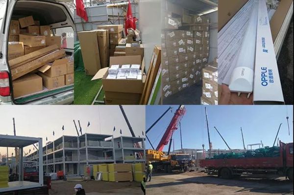 1月30日,欧普照明捐赠的1300余件照明及相关产品悉数送达工地,确保工程照明系统建设的迅速顺利完成。