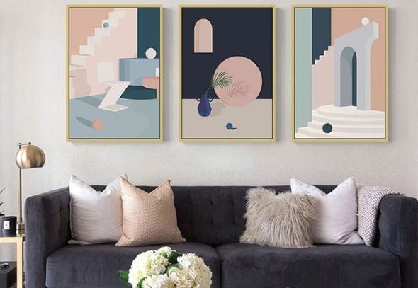 这几款装饰画颜色是出奇的温柔,在色彩的搭配上是非常融合的,挂在家里让人有一种舒适的感觉。艺术画采用了现有的建筑形式,增加了虚构和俏皮的元素,让你能够感受以及评委到高端艺术带来的美感。
