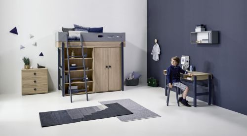 关于色彩,儿童家具哪个品牌好呢?FLEXA(芙莱莎)POPSICLE系列中的蓝莓色配色,搭配橡木与桦木的高档用材,通过组合可形成的上下两层设计,即节约空间,也满足了男孩子猎奇的心理,原木色与蓝莓色搭配,充满了时尚的高级感。