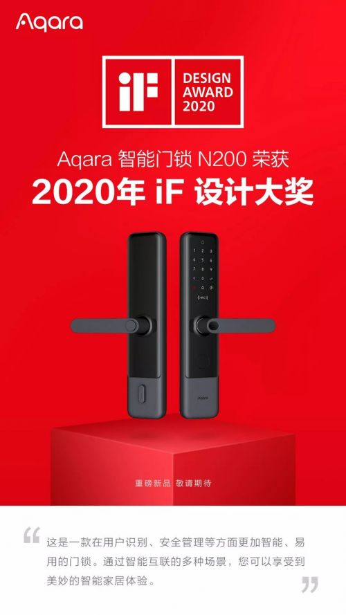 近日,「2020 年德国 iF 设计奖」评选结果正式出炉,Aqara 旗下两款新品「Aqara 智能门锁 N200」、「Aqara 智能联排开关 H1」凭借独特出众的设计及优秀的交互斩获两项设计大奖。