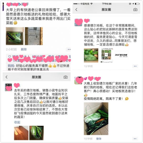 德尔地板率先采取了“送菜上门”的服务,引发不少人在朋友圈晒单、刷屏,收获了消费者一大波点赞,成为行业的一股“清流。