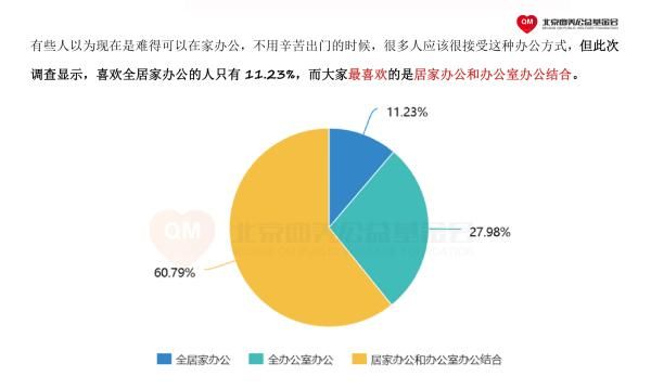 其中一项数据令人大跌眼镜,全居家办公的支持率仅为11%,而超过60%的被调查者希望未来采取居家办公与办公室办公相结合的方式。