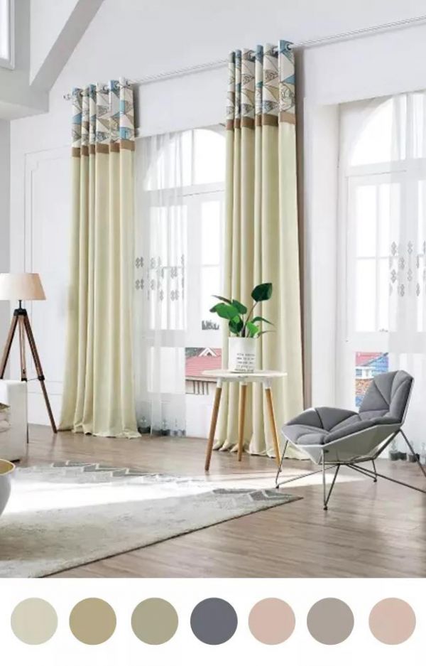 YASLAN奶黄色窗帘遵循体现时代特征——简约为主,没有过分的造型,褪去繁琐的装饰。色块置于顶端,比例适度、空间结构图明确美观。
