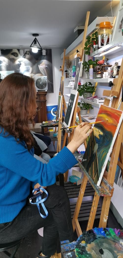 △杨梅正在油画室里作画