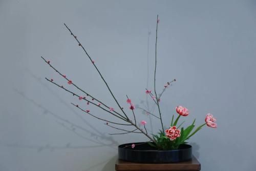 还学习了日本插花,她的插花作品,有一种别样的宁静禅意。