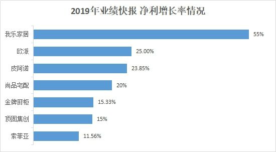 衡量一个行业的繁荣程度,从各家上市企业的业绩数据便能窥探一二。截止发稿前,7家公司已经披露2019业绩快报,以净利增长上限来计,我乐家居、欧派、皮阿诺、尚品宅配、金牌厨柜、顶固集创、索菲亚7家净利总额为42.71亿元,参照2018年度11.75%的平均净利率来计算,7家公司2019年盈利总额突破363.62亿元。