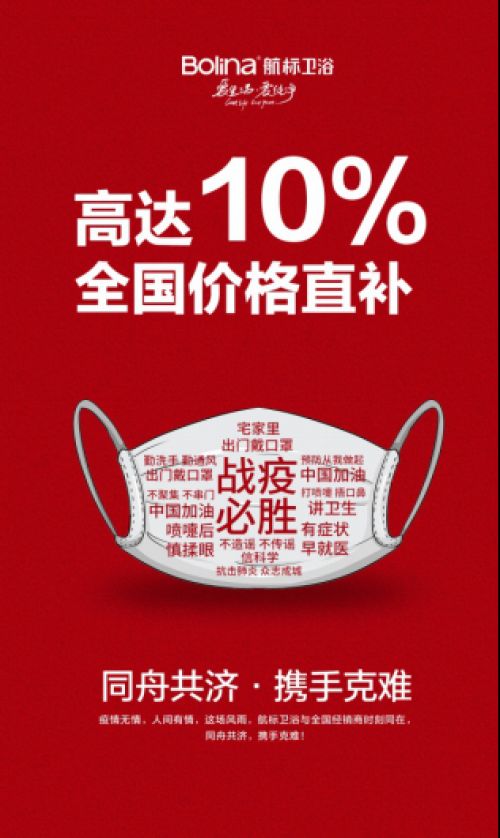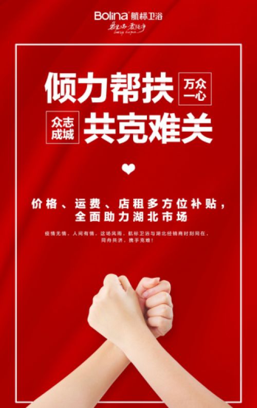 航标卫浴主要管理层于大年初四在线上投入工作,共同探讨疫情下的工作安排,自2月上旬开始针对全国经销商推出价格补贴政策。此外,航标还特别对湖北经销商推出航标卫浴专项物流补贴和专卖店租金补贴政策。2月中旬,我们开通了航标卫浴全国24小时的免费远程服务,同时对这段时间的售后,也相应延长了消费者的保修期限。