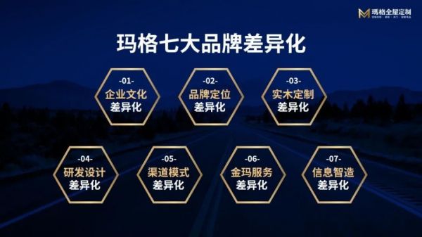 最后,我跟大家分享下玛格除了自身的系统能力外,还构建了七大品牌差异化,分别是企业文化差异化、品牌定位差异化、实木定制差异化、研发设计差异化、渠道模式差异化、金玛服务差异化、智能制造差异化。