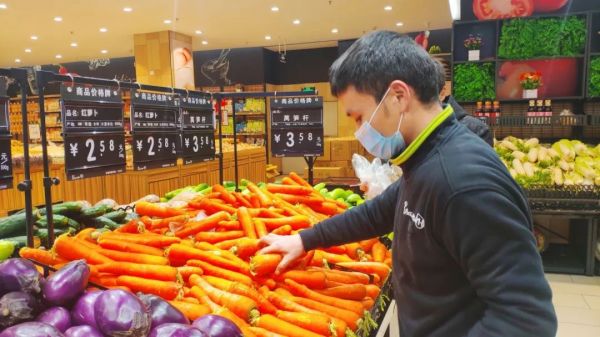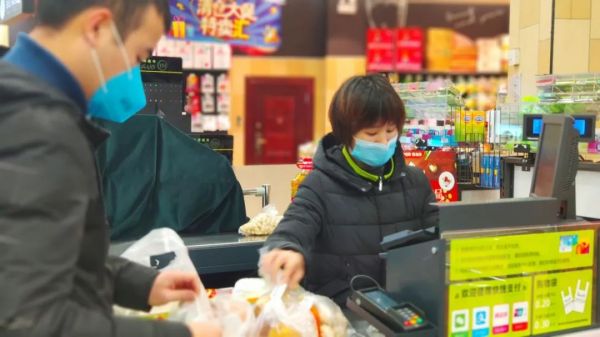 还经常在出口处看管自助机,给顾客提供帮助。他说“疫情并不可怕,只要做好每一个细节,就能让病毒无机可乘”。后勤岗让每一位顾客放心购物,每一位员工放心上班。