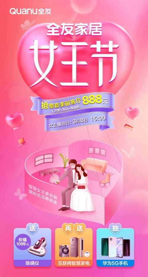 全友家居“女王节”,888元抢客厅整套家具