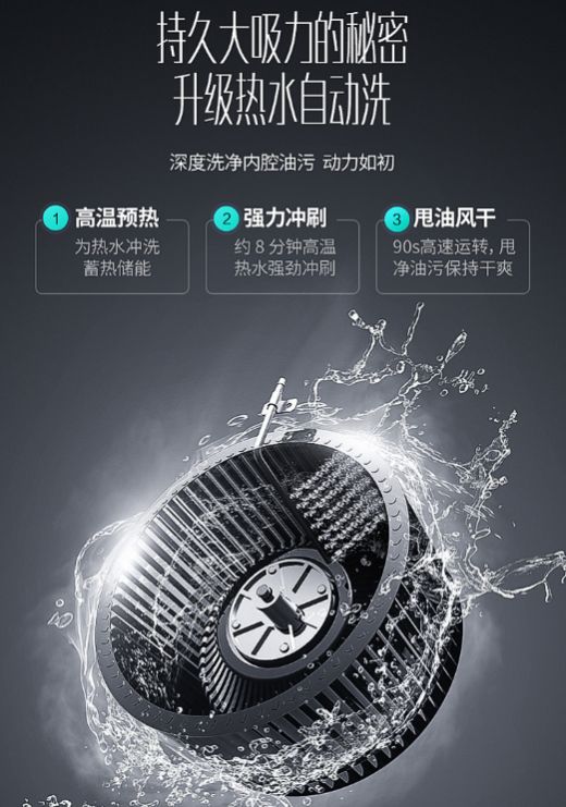 体贴的“热水自动洗”功能,不但能消除油烟机的异味,降低油烟机的噪音,延长油烟机的生命,还具有保持大吸力大风量“战斗本领”的能力。首先通过高温预热为热水冲洗蓄热储能,、然后进行约8分钟的高温热水强劲冲刷,最后进行高速运转甩油风干,我只需要换上清洗水杯,一键“自动清洗”轻轻开启,油烟机的清洁工作就自我完成了,下一刻它永远都是持久如新、精神百倍的样子。