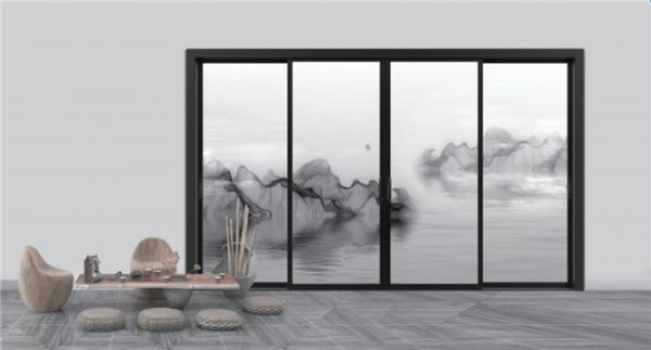 玻璃里若隐若现的水墨画营造出飘逸灵动的淡然意境,对称素雅的格条设计,装饰出丰富立体的空间层次感。