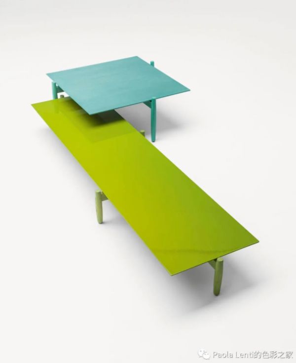 可见的木质结构由白蜡木芯制成,表面经过Mano Opaca工艺处理——一种源自意大利传统木工的古老技术。这是成品交付前的最后一个阶段,经由手工操作,将天然油覆于木材表面,起到保护作用,并加强色彩和肌理。Paola Lenti传承了这项技术并加入了新的色彩,可被木材自然吸收,同时又不会损失原本的天然美感。边桌则以Mano Lucida工艺处理,这是一种独特的手工涂刷上油技术,选用相同的色彩,在产品表面创造出微妙的光影效果。