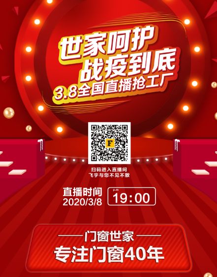 世家呵护 战疫到底 | 飞宇3.8直播抢工厂,宅家特惠选门窗