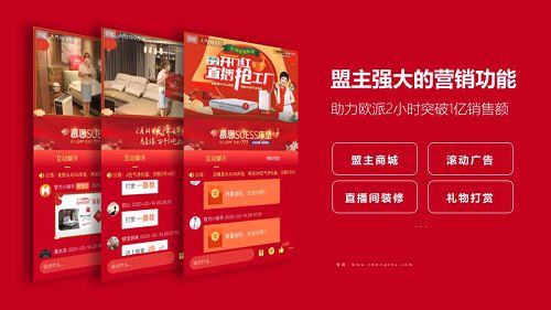 在赢下这场“直播战役”的因素中,除了欧派本身促销力度空前之外,盟主直播提供的直播营销平台也为这场战役提供了充足的“火力支持”,可以说,盟主直播是这次营销“战役”中的“幕后功臣”。那么,盟主直播在其中发挥了哪些作用呢?