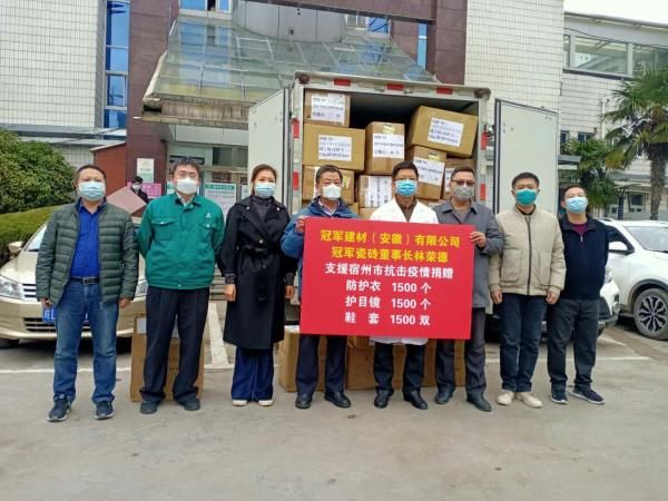 冠军建材集团另外捐助烟台市﹑宿州市护目镜与防护衣等防疫物资,价值达新台币198万,为当地加油,共尽心力,共度疫情。