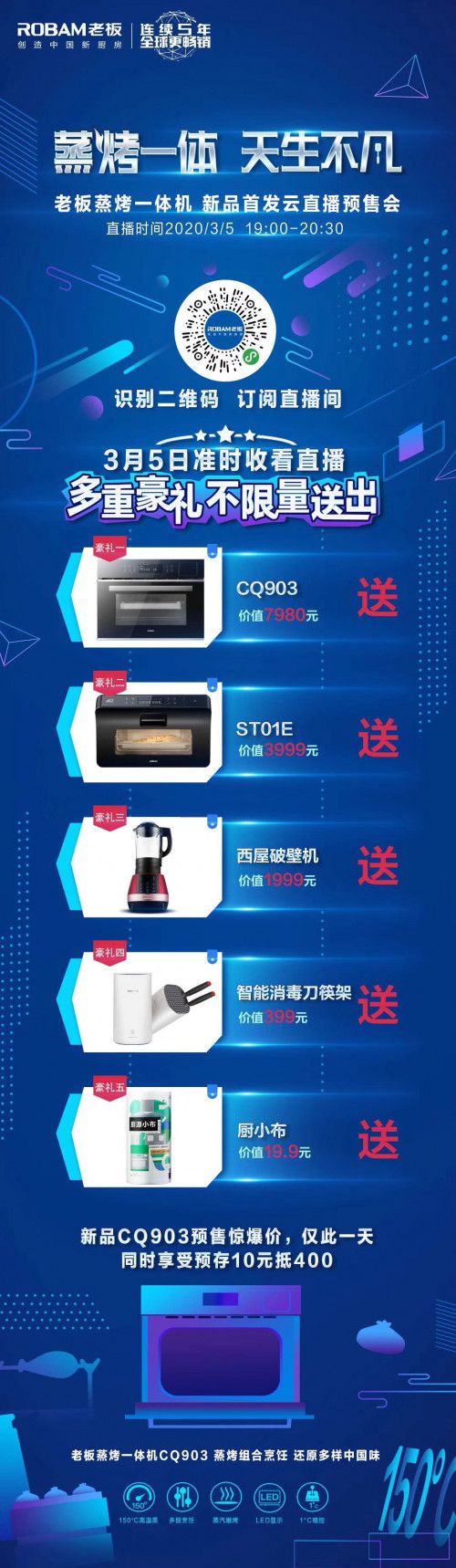 (扫码关注老板蒸烤一体机CQ903腾讯云直播预售会)