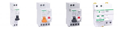施耐德电气A型漏电保护断路器(从左至右分别为:Acti 9、Easy 9、Multi 9以及Resi 9系列)